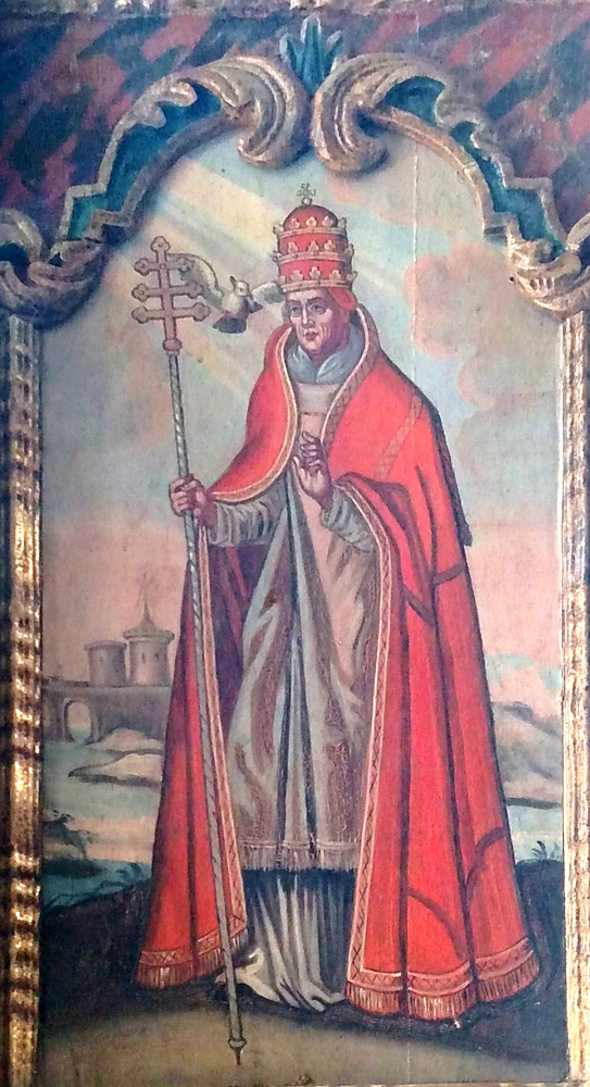 St. Gregory the Great fresco detail, Church of St. Rupert, Weißpriach, Austria. Photographed at the church by Richard Stracke, shared under Attribution-NonCommercial-ShareAlike license.